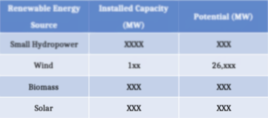 Table: Current Condition – Vietnam’s Renewable Energy Capacity