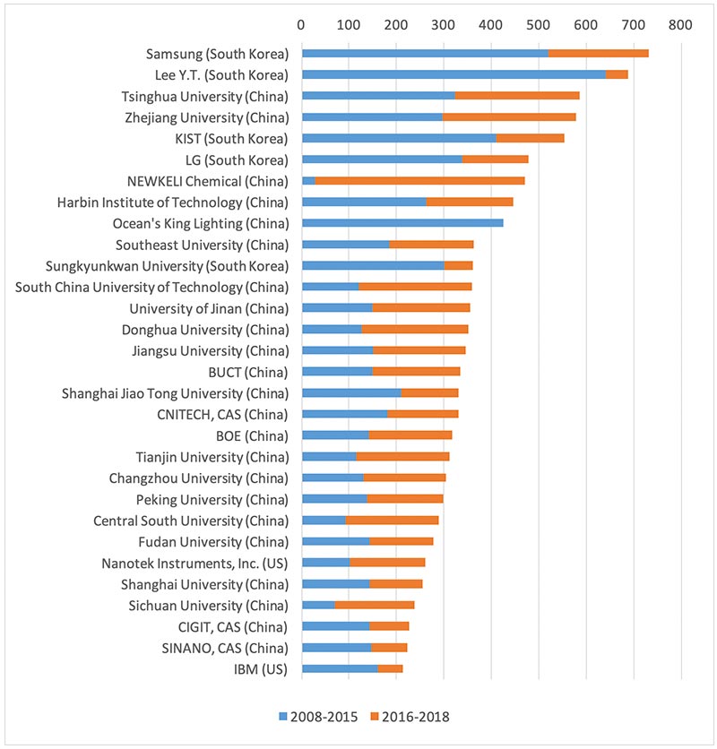 Figure: Top 30 Assignees for the Filing of Graphene-Related Patents, 2008-2018
